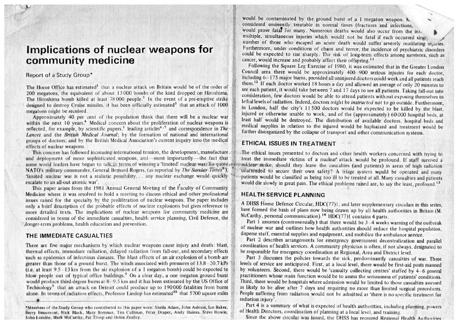 Community Medicine, ‘Implications of nuclear weapons for community medicine.’ Published: 11.07.2023 Tags: Ainslie Archive Box 8 1982. Attachments