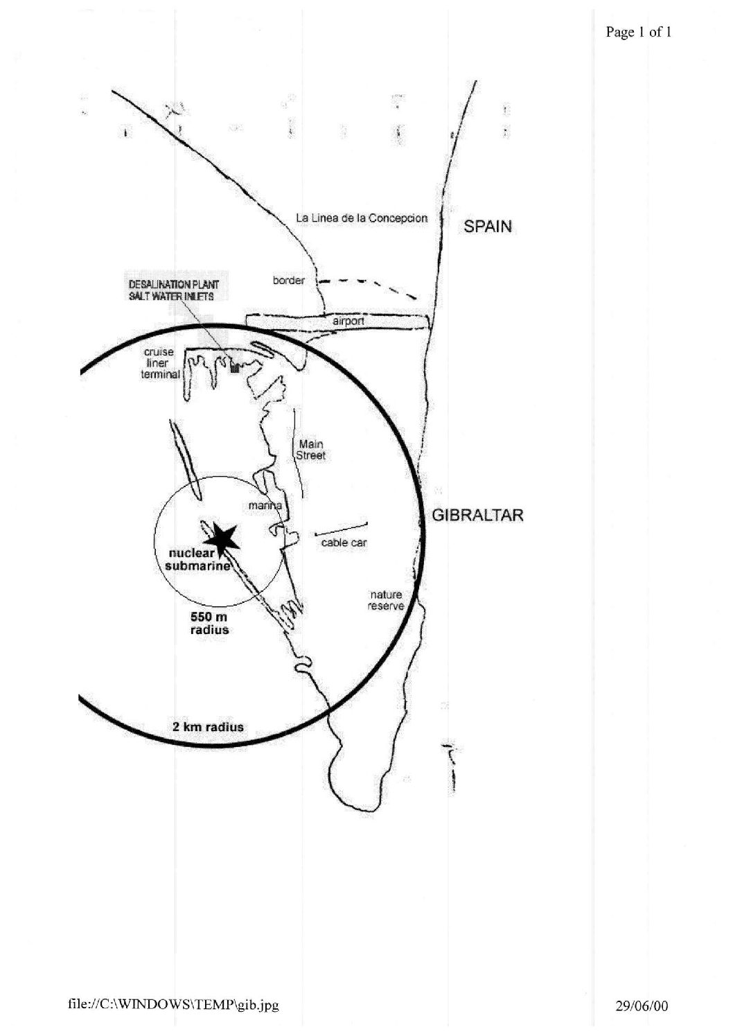 Map, Gibraltar, Nuclear submarine Published: 24.04.2023 Tags: Ainslie Archive Box 10 Europe Ministry of Defence Royal Navy Submarines United Kingdom 29 June 2000 Attachments